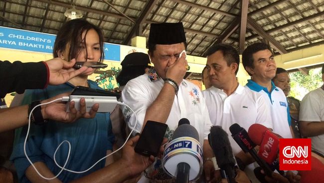 meliput selepas kunjungan, Anton pun terlihat tak kuasa membendung air